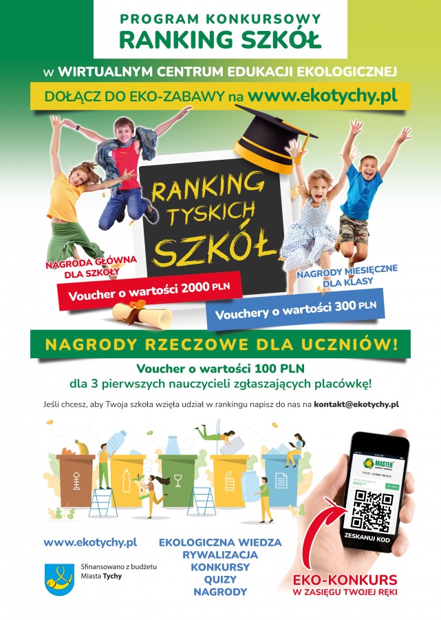 Od 12 lutego – od razu po feriach, startujemy z Rankingiem Szkół w Wirtualnym Centrum Edukacji Ekologicznej www.ekotychy.pl dla zgłoszonych szkół, w którym każdy uczestnik zapisany do rywalizacji oprócz zbierania punktów na swoje konto będzie nimi zasilał konto swojej szkoły. Im więcej punktów tym większe szanse na zwycięstwo w rankingu i super nagrody: